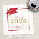 Personalized CLASS OF 2025 graduation party napkins with your graduate's name in an elegant calligraphy script shown with a faux metallic red foil graduation cap and faux metallic gold foil 2025 with red and gold border and red text. ASSISTANCE: For help with design modification or personalization, color change, transferring the design to another product or you would like coordinating items, contact the designer BEFORE ORDERING via the Zazzle Chat MESSAGE tab below or email makeitaboutyoustore@gmail.com.