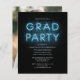 Grad Photo Blue Neon Sign Graduation Party Invitation featuring popular white text and photo you can easily change. Change the date, party details and add your photo on the reverse side by clicking the "Personalize" button