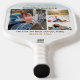 Photo collage gold script graduation party photo pickleball paddle for the new grad. Features 4 photos of the graduate, and the word "Congratulations" is set. Add their name, school college, and class year of graduation by clicking the "Personalize" button.