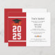Add your year of graduation, name, and details of the venue with date to this modern bold red and white background with black typography graduation party invitation by using our "Personalize" button above.