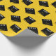 Creative graduation gift wrap and party decoration featuring black and gold graduation cap on yellow background. To personalize edit text to add grad's name and the year.