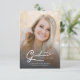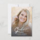 Simple modern script with two photos Graduation Announcement. Featuring a full size photo on the front with white text overlay and a photo on the reverse side with optional details.
