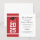 Add your year of graduation, name, and details of the venue with date to this modern bold red and white background with black typography graduation party invitation by using our "Personalize" button.