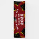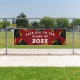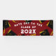 Creative graduation congratulations banner featuring black and gold graduation caps on a maroon burgundy background. Edit text to change senior class year.