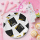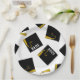 Creative grad party plates featuring classic black and gold graduation caps. To personalize edit text to add his or her name and senior class year.