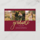Graduation 4 Photo Collage Script Burgundy Gold Budget Announcement card. Easily customize this by changing the text and replacing the photos with yours. A modern and trendier way to announce your graduation this year!