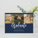 Graduation 4 Photo Collage Script Navy Blue Script Announcement card. Easily customize this by changing the text and replacing the photos with yours. A modern and trendier way to announce your graduation this year!