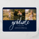 Graduation 4 Photo Collage Script Navy Blue Silver Foil Announcement for class of 2026. Easily customize this by changing the text and replacing the photos with yours. A modern and trendier way to announce your graduation this year!