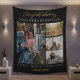 Photo collage gold script graduation party photo booth backdrop for the new grad. Features 4 photos of the graduate, and the word "Congratulations" is set. Add their name, school college, and class year of graduation by clicking the "Personalize" button.