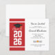 Add your year of graduation, name, and details of the venue with date to this modern bold red and white background with black typography graduation party invitation by using our "Personalize" button