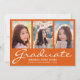 Send your family and friends a unique personalized photo collage graduation card to wow them. This modern template design features three photos for you to change to your own framed in red orange. Below your photos is the word "Graduate" in white modern handwritten script typography and your name and details to personalize. The back of the card is orange. Designed by artist ©Susan Coffey.