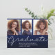 Graduation 3 Photo Elegant Script Party Navy Blue Invitation
