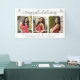 Announce to the world that your favorite grad has reached their milestone with this girly, stunning, simple, modern, personalized photo banner. A fun, playful visual of soft gray script handwriting and cute, playful hearts, along with her name, class year, school, and 3 photos of your choice overlay a white background. Personalize the custom text with your grad’s name, school and class year. Choose from indoor or outdoor options. Matching invites, thank you cards, cap toppers, posters, plaques, and other graduation goodies are also available in this trendy and stylish collection. Guaranteed to preserve cherished memories of their special occasion!