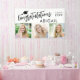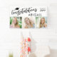 Graduation 3 Photos Congratulations Name Banner. Congratulate and celebrate your graduate with this modern banner sign personalized with three pictures, "Congratulations Name" and class year accented with a graduation cap in your choice of text, cap and background colors. Change colors in EDIT. BANNER OPTIONS: The sample is shown in the 3x5' indoor style--other sizes and "outdoor" are available on the ordering page as well as the option of transferring the design to a foam board, poster, tapestry or other product. NEED IT FAST? Request the designer send you the link to a downloadable digital file for printing locally. ASSISTANCE: For design assistance, contact the designer BEFORE ORDERING via the Zazzle Chat MESSAGE tab or email makeitaboutyoustore@gmail.com.