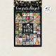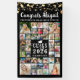 Create a custom color graduation party photo memory display banner utilizing this easy-to-upload photo collage template with 42 square pictures of your graduate through the years. The design features gold stars, editable modern script and decorative typography for your personalized title (shown with CONGRATS NAME and school name or other custom text) and CLASS OF YEAR GRADUATE in your choice of text, grad cap graphic and background colors to change to school colors or coordinating party theme colors (shown in black and white). BANNER OPTIONS: The sample is shown in the 3x5' indoor style--other sizes and "outdoor" are available on the ordering page. You can also transfer the design to a poster, tapestry backdrop or other products or have the designer convert it to a Downloadable file for local printing prior to personalizing it. ASSISTANCE: For help with design modification or personalization, color change, resizing or transferring the design to another product or converting to a Download file, contact the designer BEFORE ORDERING via the Zazzle Chat MESSAGE tab below or email makeitaboutyoustore@gmail.com.