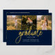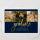 Graduation 4 Photo Collage Script Navy Foil Invitation