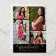 Be proud, rejoice and showcase this milestone of your favorite grad! Send out this girly, stunning, simple, modern, personalized 4 photo collage announcement for an event to remember. A fun, playful visual of real gold foil script handwriting and cute, playful hearts, along with her name, class year, and school and 4 photos of your choice overlay a black background. Personalize the custom text with your grad’s name, school and class year on the front. On the back, add your personal note, next school she’s attending, party details, etc. on the black background. Matching thank you cards, cap toppers, napkins, plates and other graduation goodies are also available in this trendy and stylish collection. Guaranteed to add stylish fun to their special occasion!