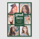 Send your family and friends a modern personalized photo collage graduation card to wow them. This modern template design features six photos for you to change to your own framed in green. In the center in white typography is the word "Grad" with the year, your name and school to personalize. The back of the card is green. Designed by Susan Coffey.