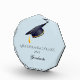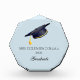 Acrylic award is shown in the octagonal shape and is shown in a blue fog color with a print of a blue graduation cap.