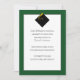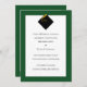 Classic graduation announcement design featuring black cap and gold tassel on green background.