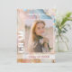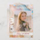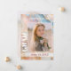Unique and trendy minimalist style congratulations graduate announcement and celebration party invitation card, framed with a stylish white abstract stripes border pattern on a stunning blush pink, aqua blue, white, and gold colored marble wave art pattern design background. With room to customize or personalize with a photo, the name of the graduate, class graduation year, high school, future college or university name, and celebration party event information. Let the family, friends, and neighbors know there is a happy graduate ready to conquer the world and invite everybody to come to celebrate the happy event with you!
