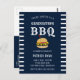 Graduation BBQ Party Blue White Stripe Invitation Postcard
