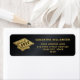 These unique black and gold return address labels feature template text to customize with your address, name and year, and they are decorated with a graduate's hat illustration in faux gold glitter. Black on this design imitates a metallic surface.
