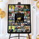 Celebrate your graduate's journey with photo memories through the years with this photo collage template for your pictures printed on a foamboard for easy easel or tabletop display at a graduation party, open house or reception. The design features 42 square pictures, a faux metallic gold graduation cap, the title CONGRATULATIONS NAME and editable class year. Choose text and background colors in EDIT to coordinate with school or party theme colors. OPTIONS: The sample is shown in an 22x28" size; other sizes are available (choose Custom Size for even borders by changing the height and width with equal number of inches AFTER clicking the UNLOCK icon that looks like a chain link next to the Height and Width fields). You can also transfer the design to a poster, banner, tapestry backdrop or other products. NEED IT FAST? Contact the designer for the link to the instant downloadable file format to print locally. ASSISTANCE: For design assistance, contact the designer BEFORE ORDERING via the Zazzle Chat MESSAGE tab below or email makeitaboutyoustore@gmail.com.
