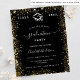 A modern, elegant graduation party invitation. A black background decorated with faux gold glitter dust. Personalize and add a name, year and details.