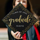 Your favorite grad will stand out and make a statement when she wears this graduation cap topper! Let her celebrate her milestone with this stunning, modern, sparkly gold glitter dots and typography script on a black background, tassel topper. Personalize the custom text with your grad’s name and class year. Guaranteed to add stylish fun to her ceremony! Matching invites, thank you cards, napkins, plates and other graduation goodies are also available in this trendy and special collection.