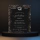 A modern, elegant graduation party invitation. A black background decorated with rose gold faux sparkles. Personalize and add a name, year and details.