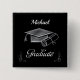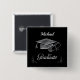 Metallic looking image of a graduation cap and diploma, with script font offer a trendy congratulations gift, souvenir, giveaway or party essential for any graduation.