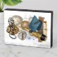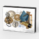 Celebrate the graduate’s achievement with this gift where keepsakes of Graduation Memory whith this custom rusic wood box. Featuring the design on front of gray, blue, and beige balloons accented with sparkling confetti, a classic blue top hat, and a elegent champagne bottle with a gold label, this design exudes sophistication and celebration. The front proudly displays the graduate’s name and graduation year, while the inside offers a dedicated space for your heartfelt, personalized message—making it a meaningful keepsake of memories.
