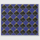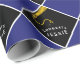 Creative graduation gift wrap and party decoration featuring black graduation cap and gold tassel design on a blue background. Edit text to add senior graduate's name.