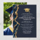 Graduation Blue Gold Agate Graduation Photo Invitation