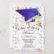 Graduation Blue Grad Cap Diploma Confetti Party Invitation