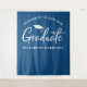 A modern photo booth backdrop tapestry for his or her graduation celebrations. "Congrats To Our Graduate" is written in a mix of simple white typography and a large white script on a classic background. Personalize with his or her name and class year in simple white typography. You can change the colors to your school colors by editing in the design tool.