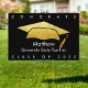 Announce to the world that your favorite grad has reached their milestone. Everyone who passes by will not be able to miss this stunning, simple, modern, personalized yard sign. Bold, graphic, white typography and a faux gold foil cap icon overlay a black background. Personalize the custom text with your graduate’s name, mascot or school name, and class year. Guaranteed to preserve cherished memories of their special occasion!