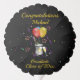 A Graduate congratulations balloon with an ice bucket, bottle of bubbly sparkling wine, flute glasses, colorful balloons and confetti all on a black background. A lovely party decor or gift for those have graduated school ,college and university. Can be customized by amending the title then personalize with their name and year. Background color can be changed if needed.