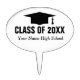 2025 Graduation cake topper with custom class year and high school name. Fun cake picks with personalized text. Trendy party supplies and decorations for graduate students. Also great for cupcakes. Elegant black and white design with tassel cap silhouette.