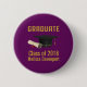 A button with a chic design illustrated with a graduation cap and diploma. Text says: Graduate Class of 2018 (you can customize the year) and the graduate's name. Set on a pretty purple background with gold colored lettering. Simple and modern.