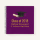 Spiral notebook with a chic design illustrated with a graduation cap and diploma. Text says: Class of 2018 (you can customize the year) and the graduate's
