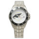 Has heft and feel of expensive stainless steel quartz watches. Good band with safety catch. I removed links, which is easy because engraved arrows show direction to push the linking pins. As always by this seller, the image (a railroad logo) is a perfect reproduction of my emailed image, and is precisely spaced and aligned.