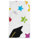 Displayed here is a graduate theme pattern complete with colorful yellow, blue and green stars as well as graduation caps and diplomas. A colorful gift bag, order yours today!