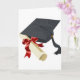 Black graduation diploma hat and diploma parchment rolled up and secured with a red crimson colored ribbon