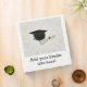 Custom Personalized gifts and party favors with graduation cap mortarboard and tassel in black, with a rolled-up diploma with red ribbon, and a canvas look background. Customize it with your name, school or other text.