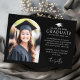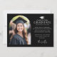 Photo announcement card featuring your photo inside an elegant arch shaped frame and a graduation cap logo with the text "graduate" and class of your year. Add a custom message below.