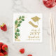 Create elegant white and gold personalized graduation napkins decorated with a graduate's cap and diploma illustrations, and emerald green eucalyptus greenery. The template makes it easy to personalize the design with the grad's name and year of the event - you can make it for the class of 2025 graduate, 2026, 2027 and beyond.