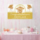 Personalize this custom faux gold glitter graduation party banner with my unique gold cap and tassel design for your new graduate. With room for your graduate's name, school name and graduation year, this white and yellow gold tone graduation banner will add a custom touch to your graduation party venue.