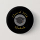 A personalized button designed with a black graduation cap surrounded by a semi-transparent white circle. Class of 20xx written above. Modern and stylish.